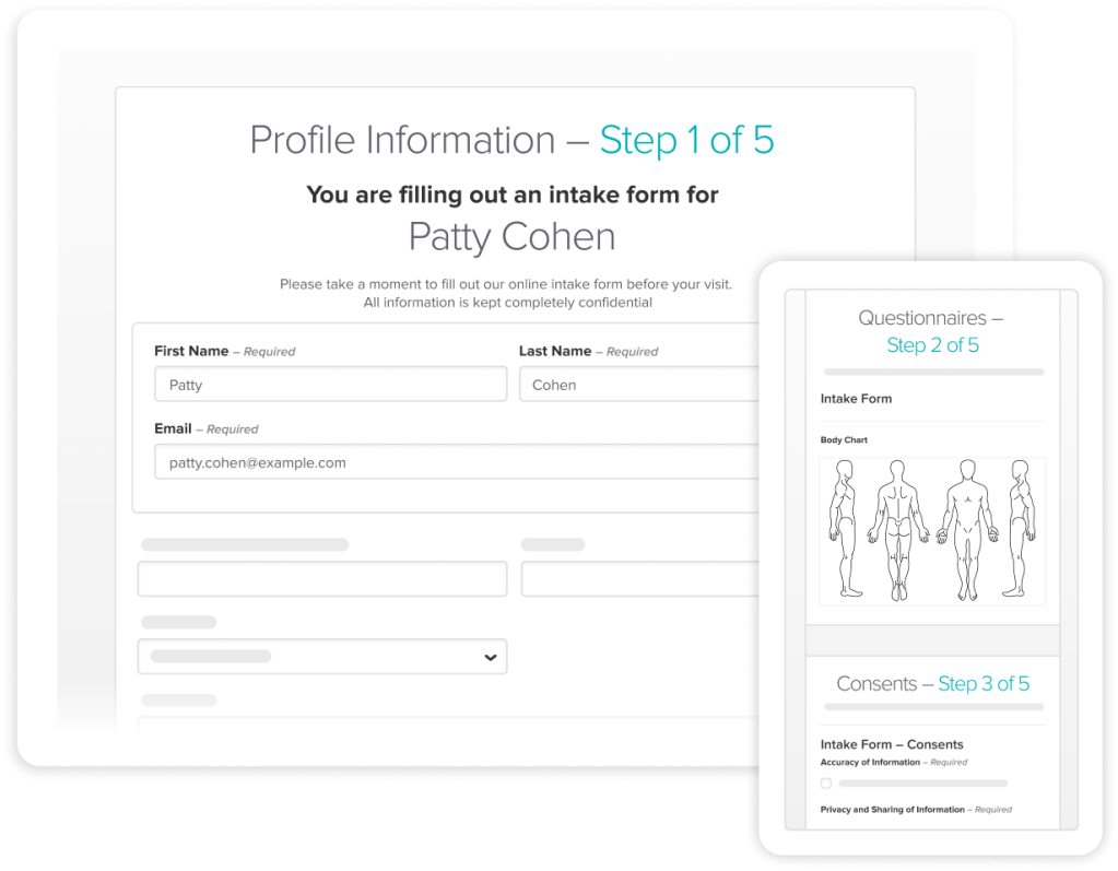Patients can complete intake forms at home or on the go with any device (phone, tablet, or desktop) before their appointment.
