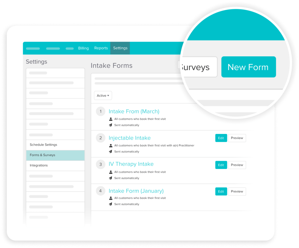 - Intake forms sent automatically at time of booking