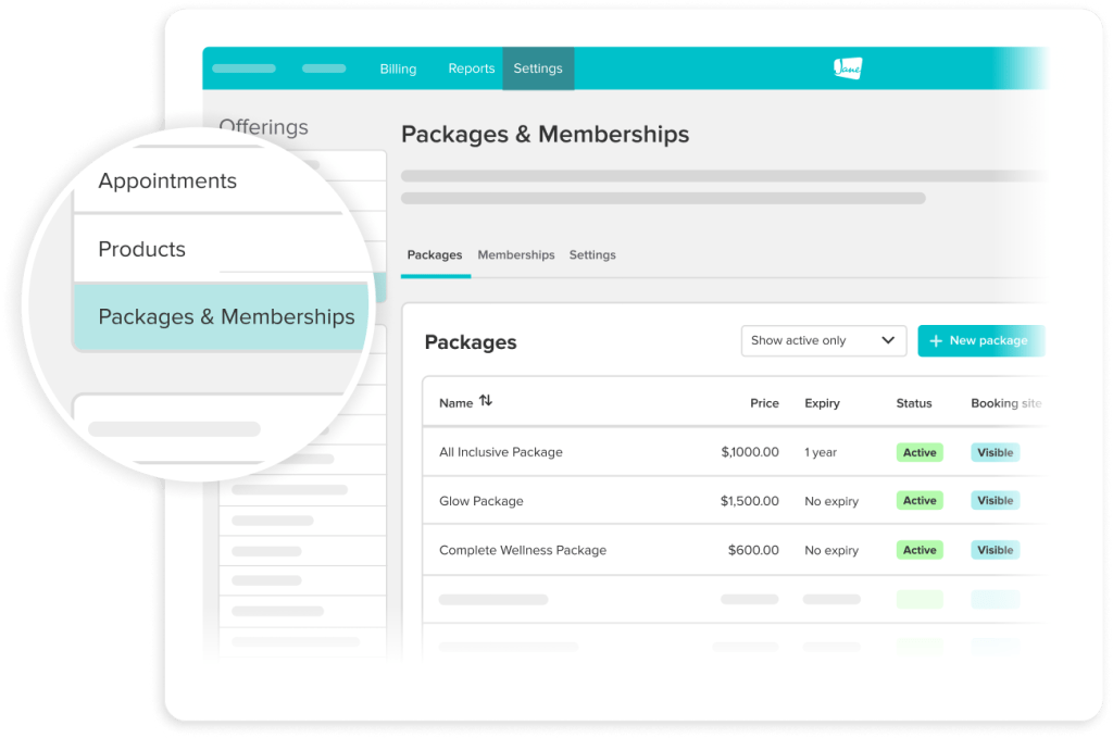Offer custom packages and memberships that reflect how you deliver care. From prepaid sessions to recurring subscriptions, Jane helps manage it all.