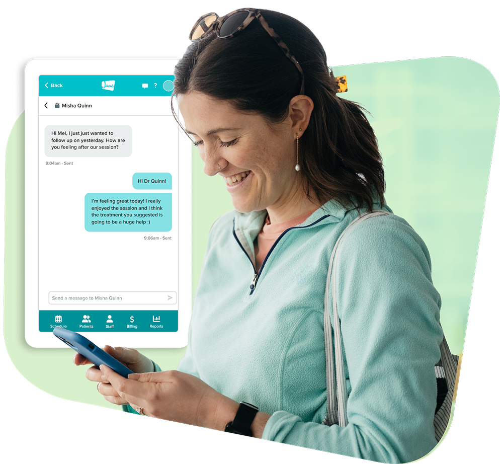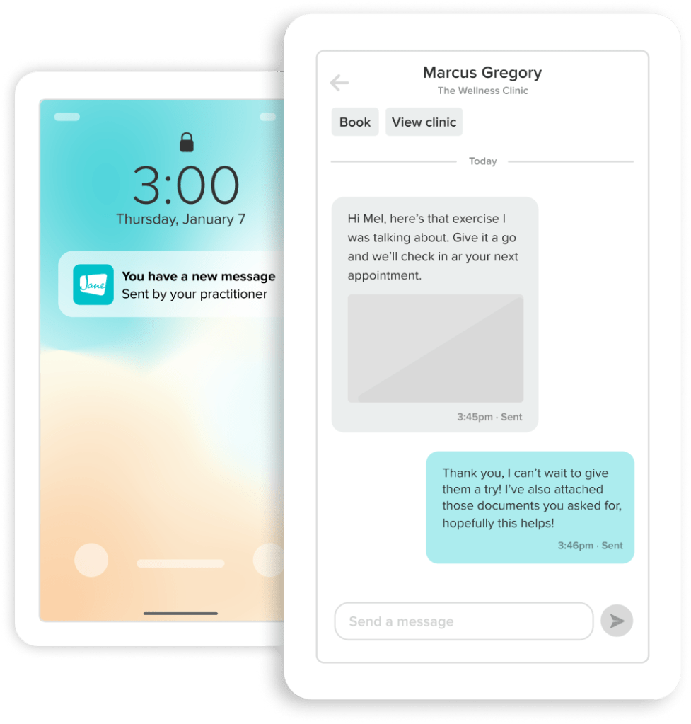 Your messages are always available in the Jane’s Patient Portal and in the Jane for Clients mobile app. They can view message history and shared documents whenever they need to, without adding extra work for your team.
